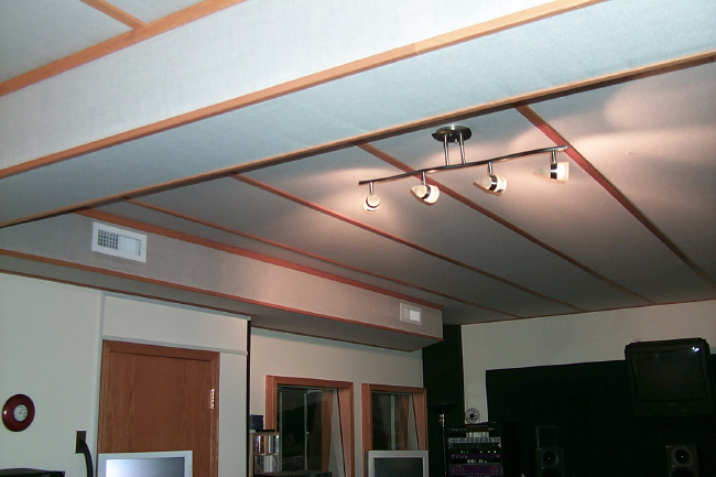 Recording Studio - Ceiling soundproofing with oak trim